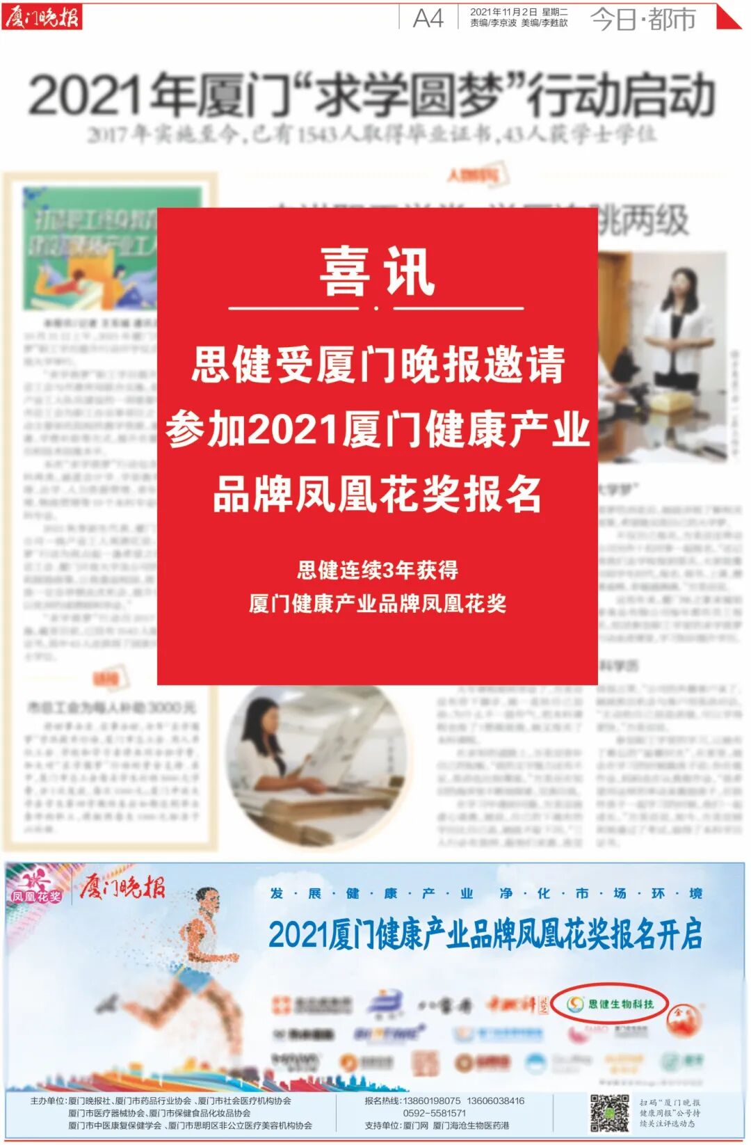 思健連續(xù)3年獲得廈門健康產(chǎn)業(yè)品牌鳳凰花獎
