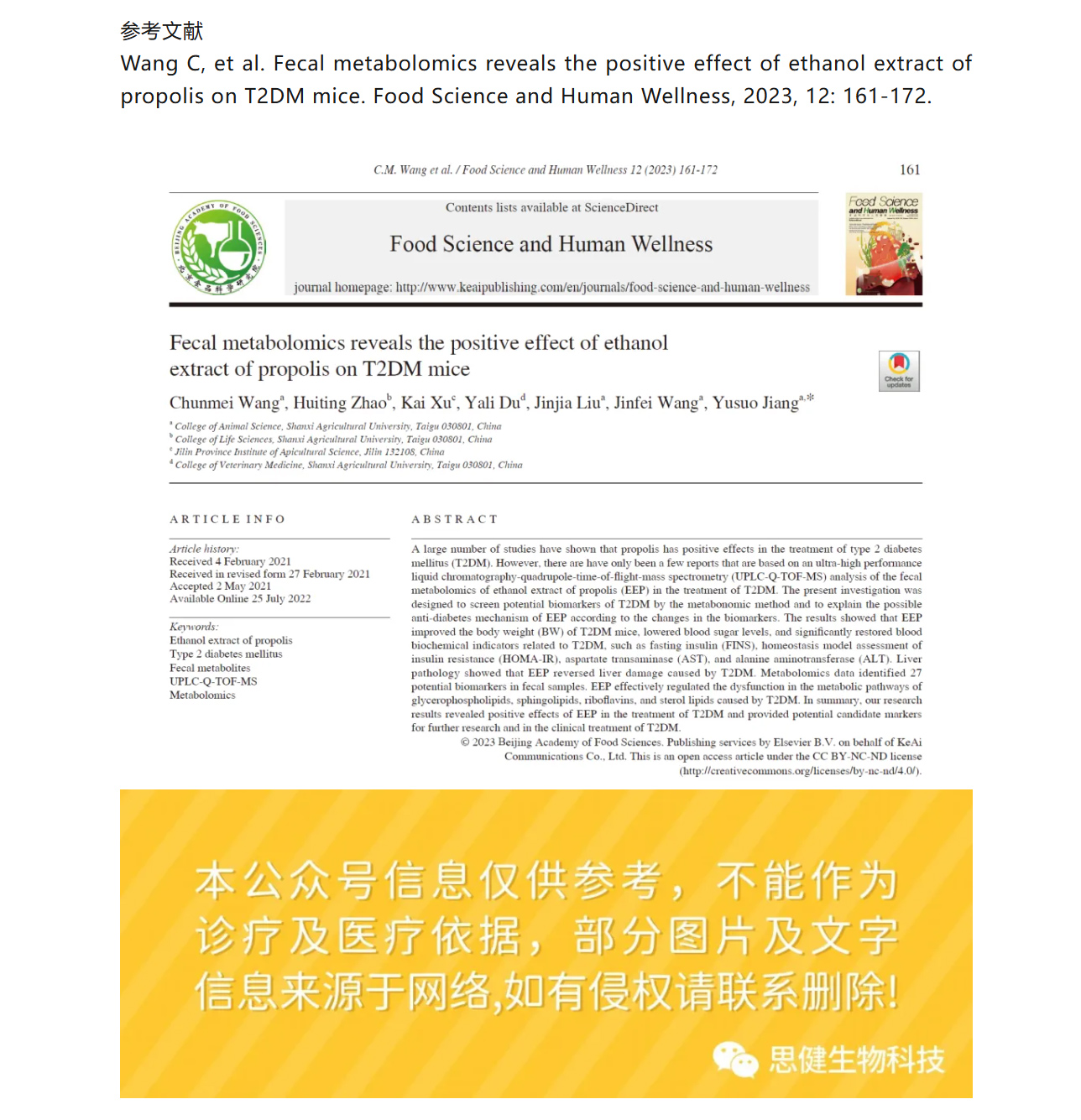 【科研速遞】蜂膠乙醇提取物如何“修復(fù)”糖尿?。考S便代謝組學(xué)揭開關(guān)鍵機(jī)制!