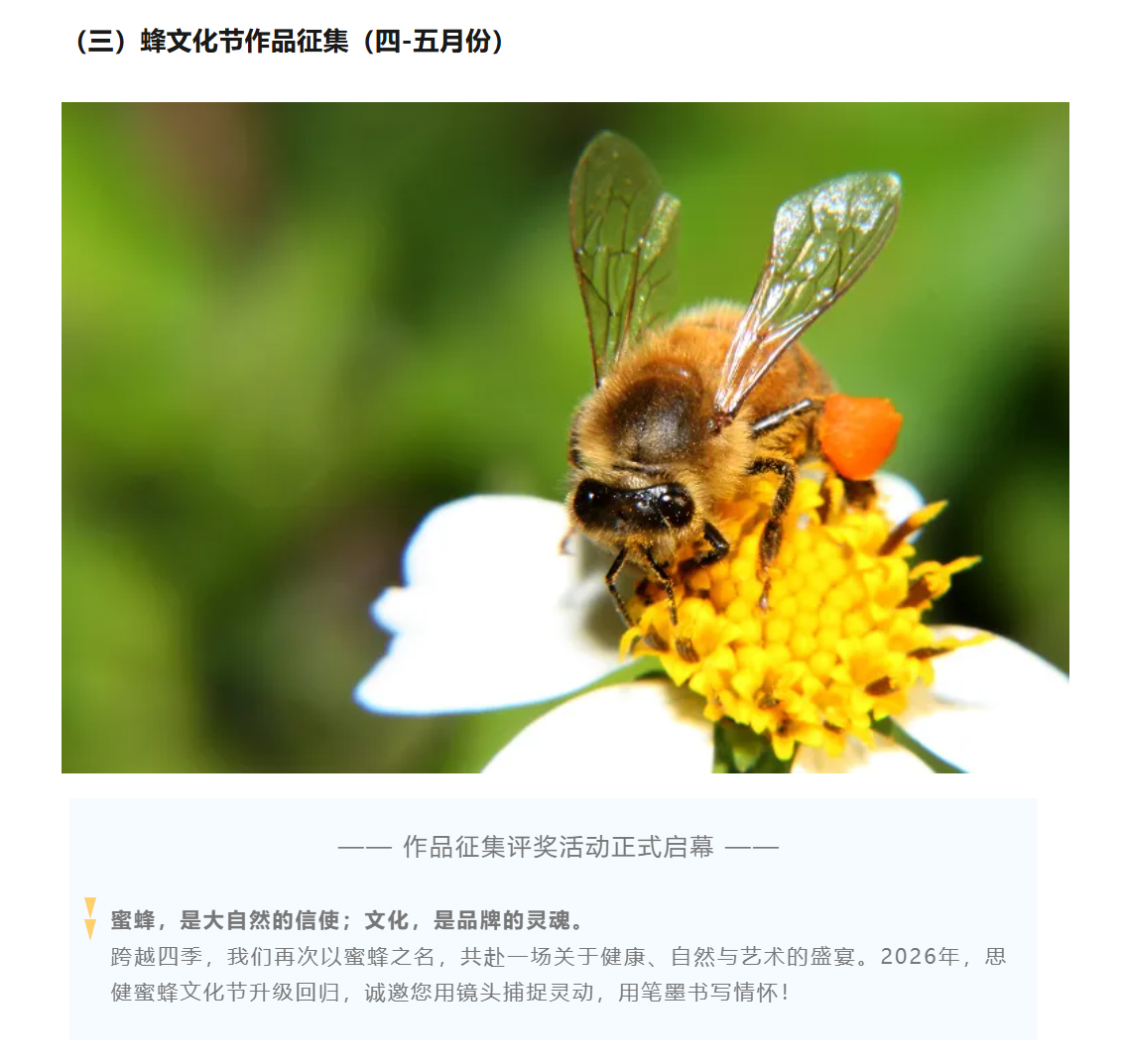 喜迎世界蜜蜂日暨2026思健蜜蜂文化節(jié)作品征集評獎活動開始啦!